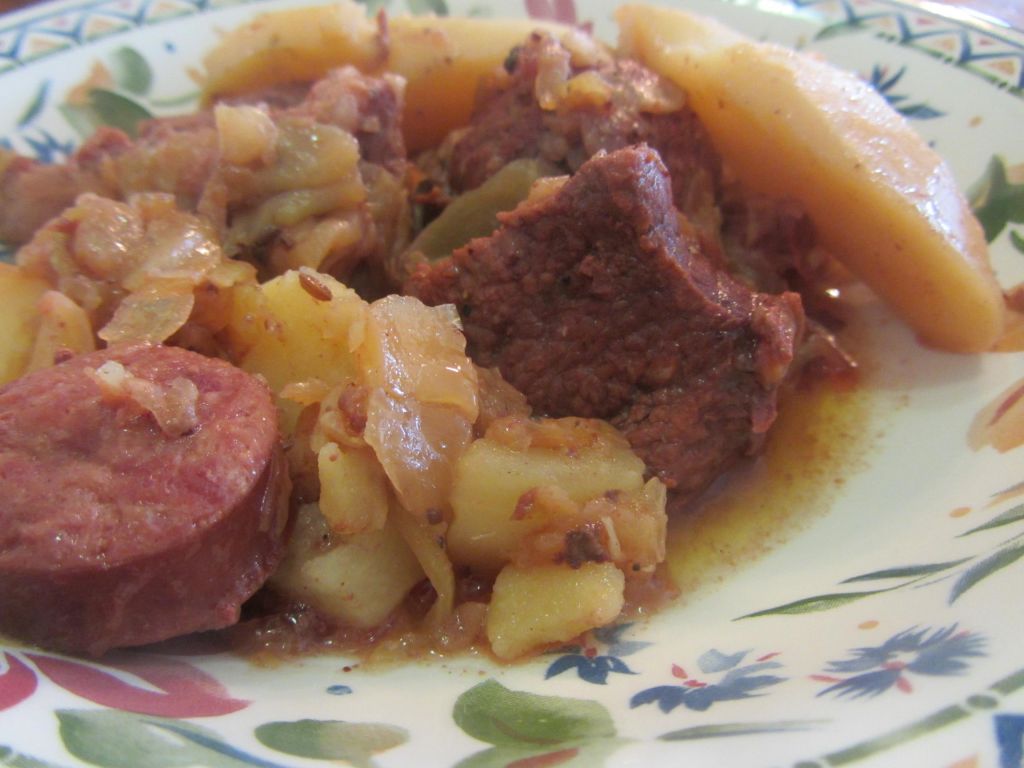 מעדן לאוהבי הבשרים המעושנים, הכרוב הכבוש ותפוחי אדמה - לא כשר במקור, המתכון הוא מהמטבח הצרפתי אלזסי, עם ההשפעות...